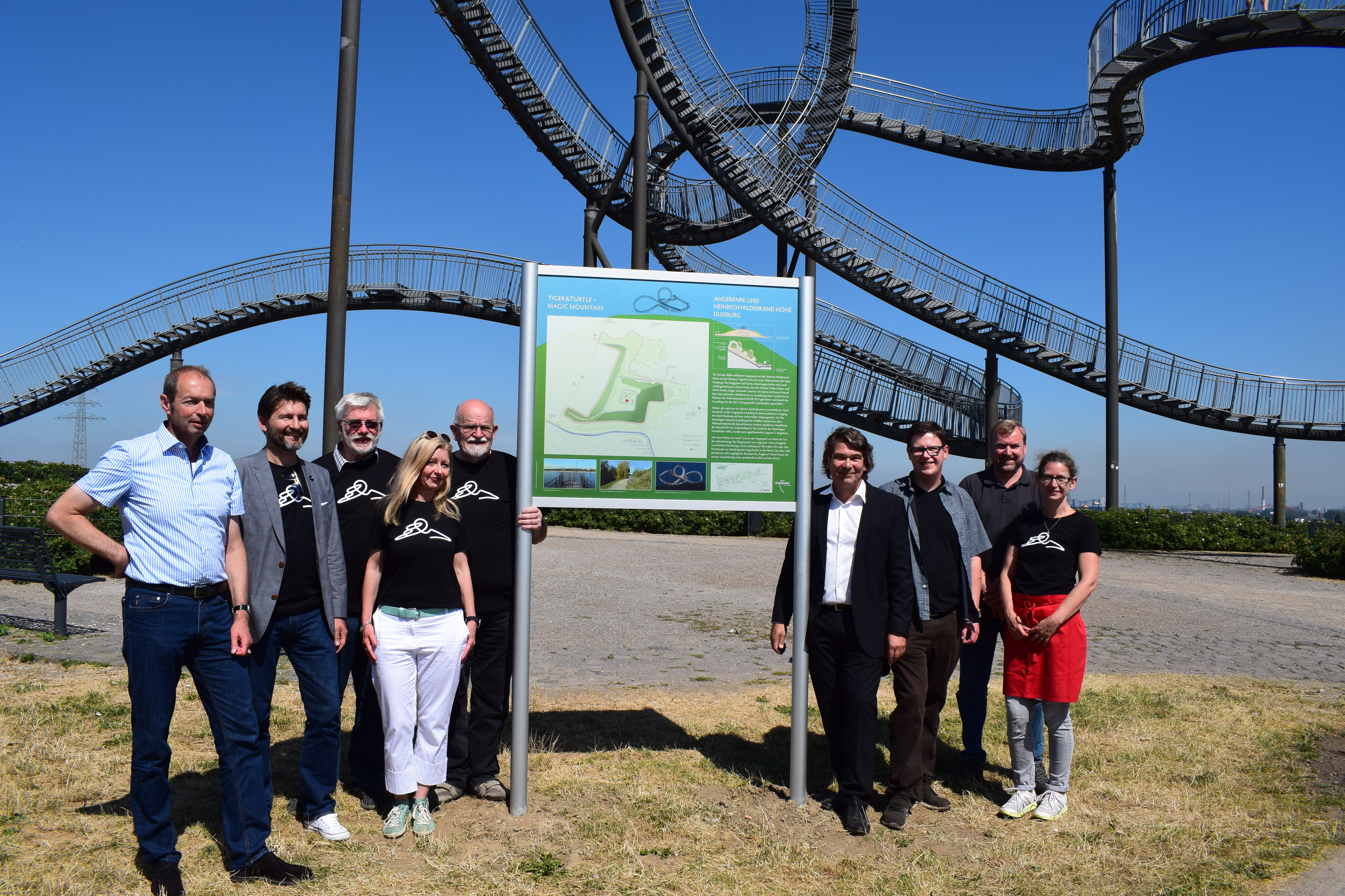 Einig sind sich auch Ratsherr Reiner Friedrich, Vorsitzender des Tourismusbeirats von Duisburg Kontor und Kai U. Homann, Bereichsleiter Tourismus bei Duisburg Kontor, darin, dass angesichts der touristischen Bedeutung der Landmarke, weitere Schritte notwendig sind. „Viele Menschen kennen die Landmarke bereits aus den Medien, aber nicht alle wissen, dass Tiger & Turtle bei uns in Duisburg steht. Wir sind dabei, das zu ändern.“ Also beste Aussichten auf der Heinrich-Hildebrandt-Höhe.
