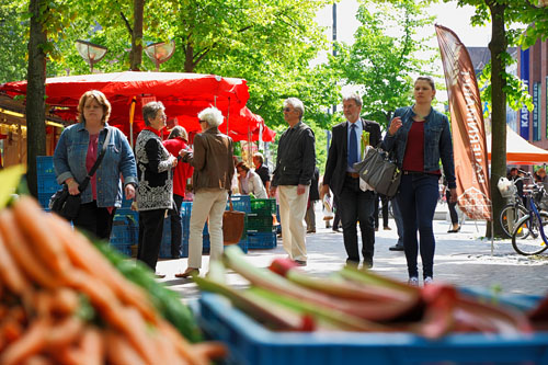 Mitten im Herzen der Duisburger Innenstadt auf der Königstraße – hier erleben Sie jede Woche den beliebten Bauernmarkt. Unsere Marktbeschicker bieten Ihnen eine große Auswahl an erzeugernaher und qualitativ-hochwertiger Ware. Selbstverständlich stehen hier ganz besonders die frischen Produkte wie Obst und Gemüse, Kartoffeln, Wurst und Fleisch, Fisch, Backwaren, Käse und Eier aber auch Blumen und Pflanzen – direkt vom Erzeuger – im Mittelpunkt des Bauernmarkts. Und natürlich sind auch Anbieter von Biowaren dabei. Der Bauernmarkt auf der Königstraße in der Duisburger Innenstadt ist als Einkaufsquelle frischer, erzeugernaher Ware und natürlich auch als Treffpunkt für die Duisburgerinnen und Duisburger am Dienstag, Donnerstag und Samstag zwischen 10:00 und 18:00 Uhr ein echtes Vergnügen.