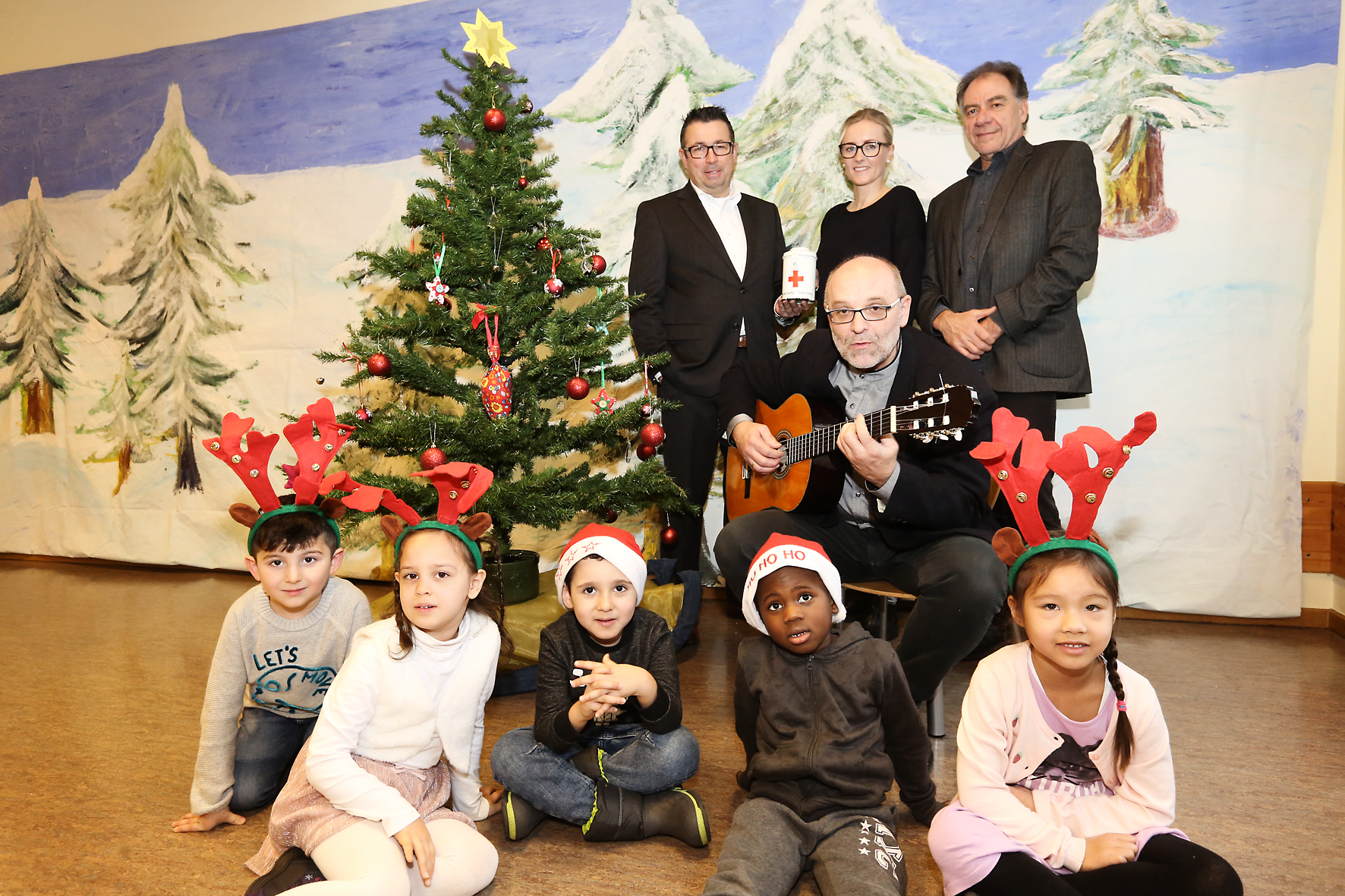 Am Donnerstag, 29.11.2018, besuchten die Verantwortlichen der Duisburg Kontor Hallenmanagement GmbH und ein Künstler die Einrichtung in Hochfeld und verschafften sich einen Eindruck von der Situation vor Ort. Mit dabei waren Arnim Bartetzky, musikalischer Leiter der Mercator-Weihnachtsshow, Michael Kappaun, Geschäftsbereichsleiter bei Duisburg Kontor Hallenmanagement GmbH, Ilona Mlynski, Einrichtungsleiterin des DRK Familienzentrums Schwedenheim und Volker Klaus, Leiter Abteilung Soziale Arbeit & Bildung DRK Duisburg e.V..