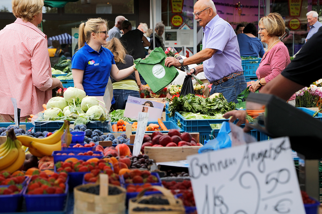 Am 16. Juli 2018 starten die Sommerferien in Nordrhein-Westfalen: die beste Zeit im Jahr den Tag im Freien zu verbringen – so zum Beispiel auf einem der zahlreichen Wochenmärkte im Duisburger Stadtgebiet.