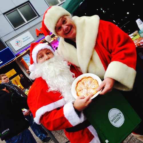 So wird der Weihnachtsmann auf Bitten des FrischeKontors auf einigen Wochenmärkten unterwegs sein: