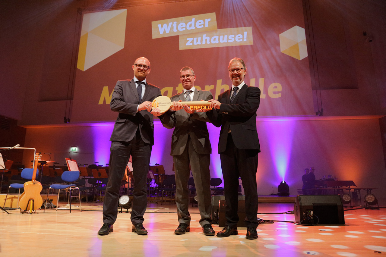 Allen Gästen war die Freude darüber anzumerken, dass die Mercatorhalle nun wieder in Gänze der Öffentlichkeit zur Verfügung steht. Sie hält schon wieder zahlreiche tolle Veranstaltungen bereit. Von Lang Lang über Eckard von Hirschhausen, vom WDR Sinfonieorchester bis zu dem Ball der Schifffahrt, von der Prinzenkürung bis zum Stadtwerkechor.