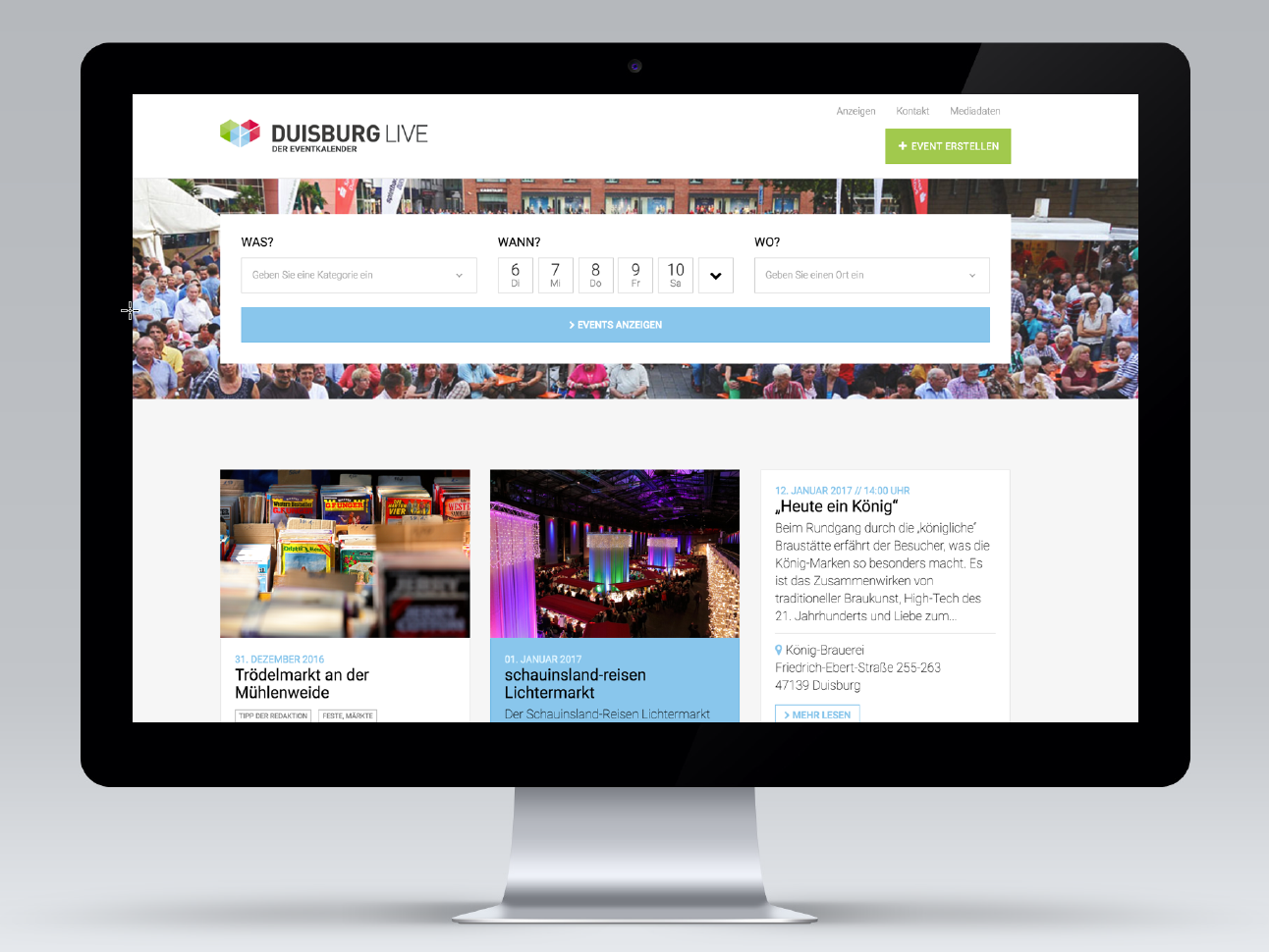 Aktuell, informativ und modern: Das ist die Idee hinter dem neuen Online-Eventkalender DUISBURG LIVE! Im Zeitalter von web 4.0 ist ein digitaler Eventkalender für eine Großstadt wie Duisburg ein Muss.