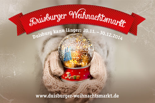 Endlich ist es soweit: Die Fans des Duisburger Weihnachtsmarktes kommen bald wieder voll auf ihre Kosten. Am Donnerstag, 20. November 2014, hat das Warten endlich ein Ende, denn dann startet der 37. Duisburger Weihnachtsmarkt. Und da es im letzten Jahr mit der (erstmaligen) Verlängerung über das Weihnachtsfest hinaus so gut funktioniert hat, findet Duisburgs längste und wichtigste Open-Air-Veranstaltung auch in diesem Jahr bis zum 30. Dezember statt.