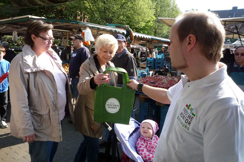 Zum Start in den Frühling wird der Wochenmarkt in Hochfeld (Saarbrücker Straße/Fröbelstraße) die Gelegenheit ergreifen, um sich bei der Kundschaft für die fortwährende Treue zu bedanken. So werden am Samstag, 21. März 2015, zwischen 9:00 und 12:00 Uhr frische Wochenmarkt-Einkaufstaschen an die Kundschaft des beliebten Wochenmarktes verteilt – und das, solange der Vorrat reicht. Die Marktbeschicker des Wochenmarktes und das FrischeKontor freuen sich auf zahlreiche wochenmarktbegeisterte Kundinnen und Kunden.