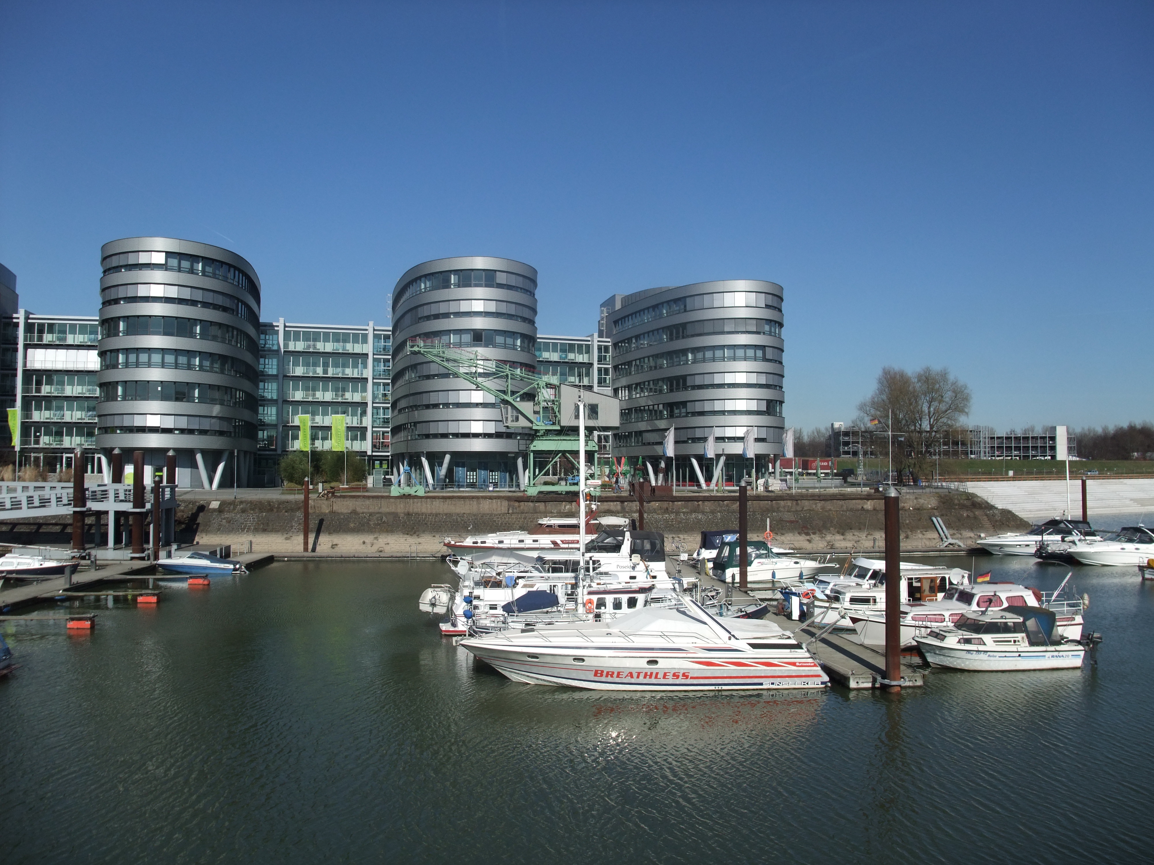 Der Innenhafen direkt hinter dem Duisburger Rathaus gelegen, wurde früher wegen seiner Getreidespeicher „Brotkorb des Ruhrgebiets“ genannt.