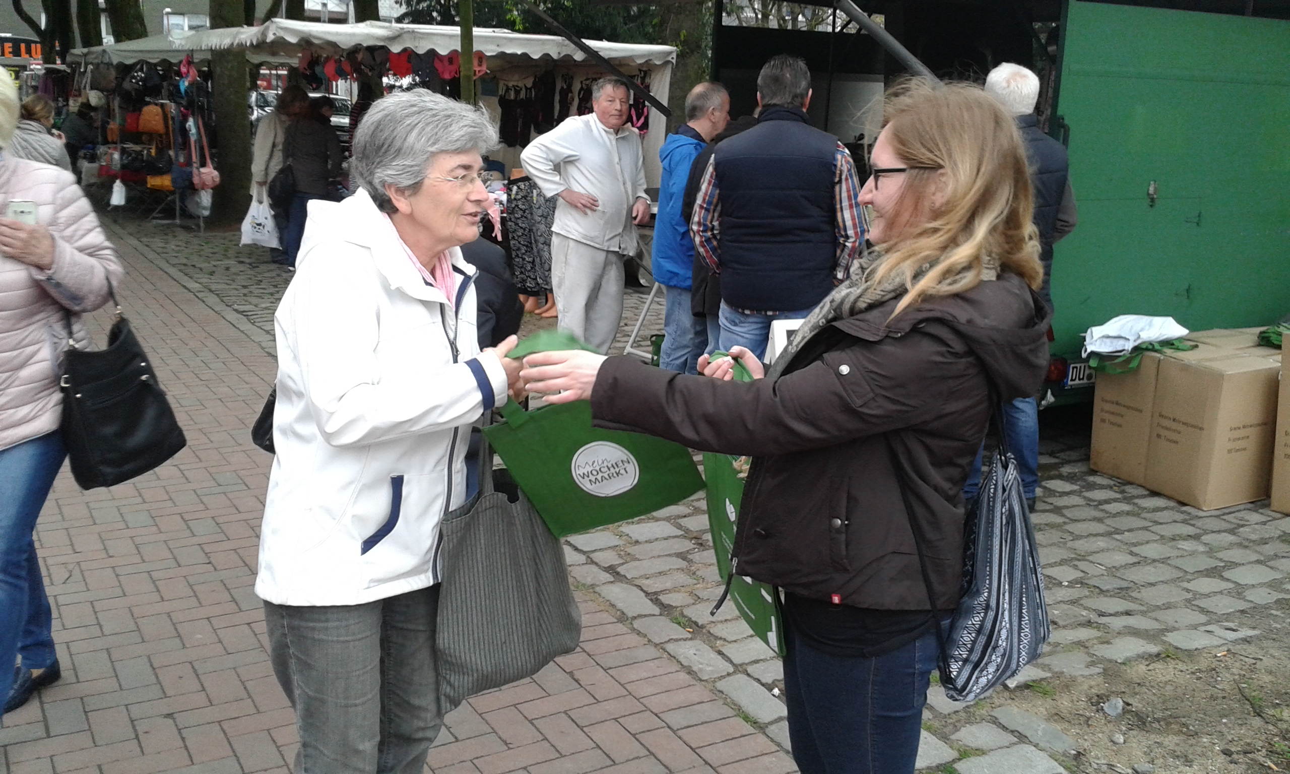 So werden am Mittwoch, 17. August 2016, von 10 bis 12 Uhr auf dem Wochenmarkt in Hochheide frische Wochenmarkt-Einkaufstaschen verteilt – und dies, solange der Vorrat reicht. Am Tag darauf – dem Donnerstag, 18. August 2016 – geht es von 9 bis 13 Uhr im Wanheimerort weiter. Auch hier dürfen sich die Kundinnen und Kunden auf das beliebte Geschenk freuen.