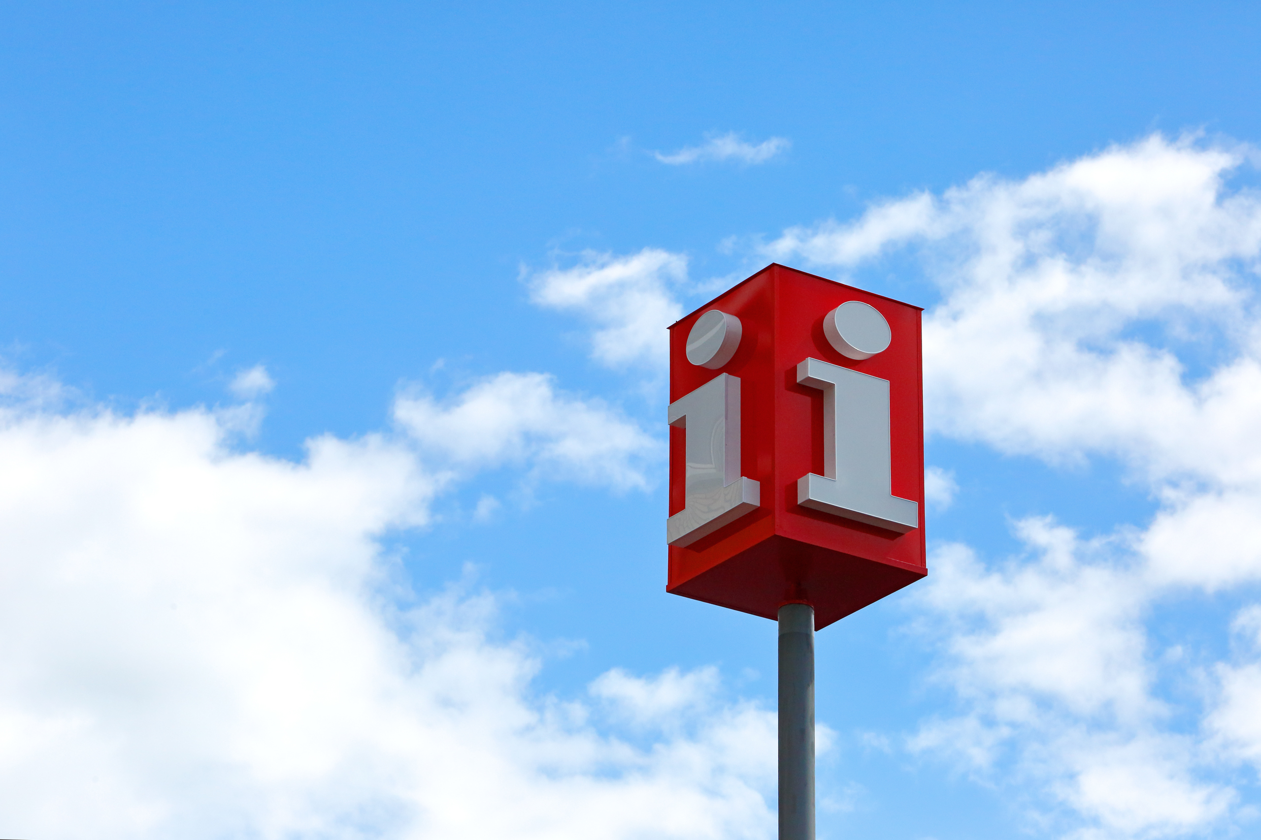 Der Kubus mit dem großen weißen „i“ auf rotem Grund ist weithin sichtbar. Mit einem demonstrativen Knopfdruck begann er zu rotieren, als Bürgermeister Manfred Osenger und die Duisburg Kontor-Geschäftsführung Peter Joppa und Thomas Krützberg Duisburgs die neue touristische Anlaufstelle offiziell eröffneten.