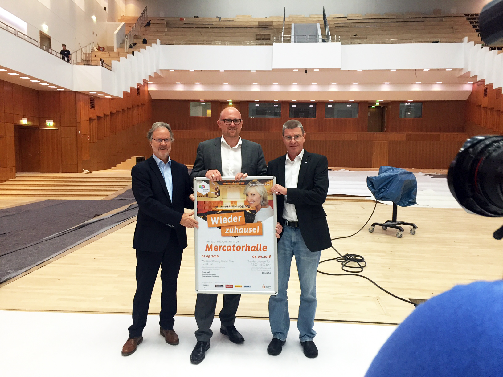 Nach ziemlich genau vier Jahren wird ab dem 01.09.2016 das komplette Ensemble der Veranstaltungsräumlichkeiten in der Mercatorhalle – neben dem Kongressbereich und dem Kleinen Saal dann auch wieder der Große Saal mit bis zu 1800 Plätzen – zur Verfügung stehen. Der Anlass wird mit einer Festwoche gefeiert.